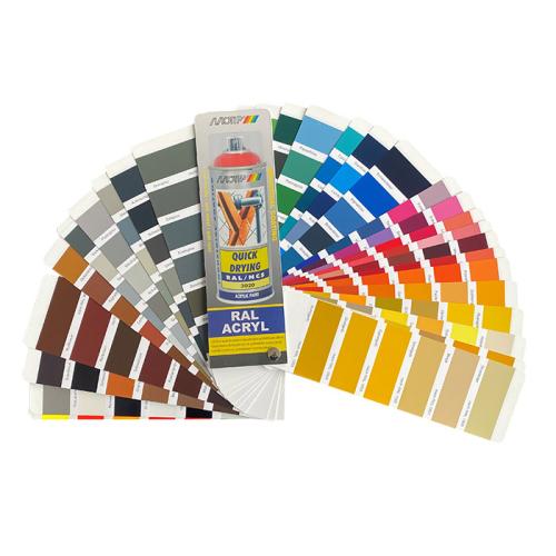 Læs mere Komplet farvevifte med alle farver i Motip RAL sortiment. Find den farve som kommer tættest på via. farvekortet. Kortet er udformet i kraftig kvalitet så det holder længere.